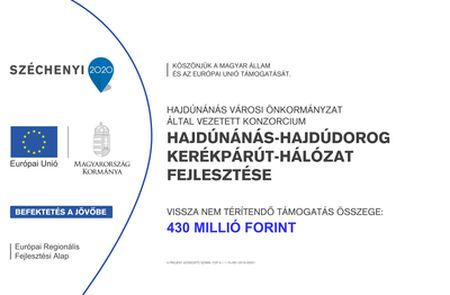 Lezárult a TOP-3.1.1-15-HB1-2016-00001 számú 'Hajdúnánás-Hajdúdorog kerékpárút-hálózat fejlesztése' címu, Fenntartható települési közlekedésfejlesztés tárgyú projekt, melynek keretén belül a két település belterületén kerékpáros-barát úthálózat került kialakításra. A pályázat eredményeképpen olyan fenntartható közlekedés feltételeit megteremto és erosíto közlekedésfejlesztési intézkedések valósultak meg a településeken, melyek hozzájárulnak az éghajlatváltozás mérsékléséhez, a szén-dioxid kibocsátás csökkentéséhez, az élheto városi és települési környezet kialakulásához, valamint az EU2020 és a Nemzeti Közlekedési Infrastruktúra-fejlesztési Stratégia fenntartható fejlodésre és közlekedésre vonatkozó céljainak teljesüléséhez.