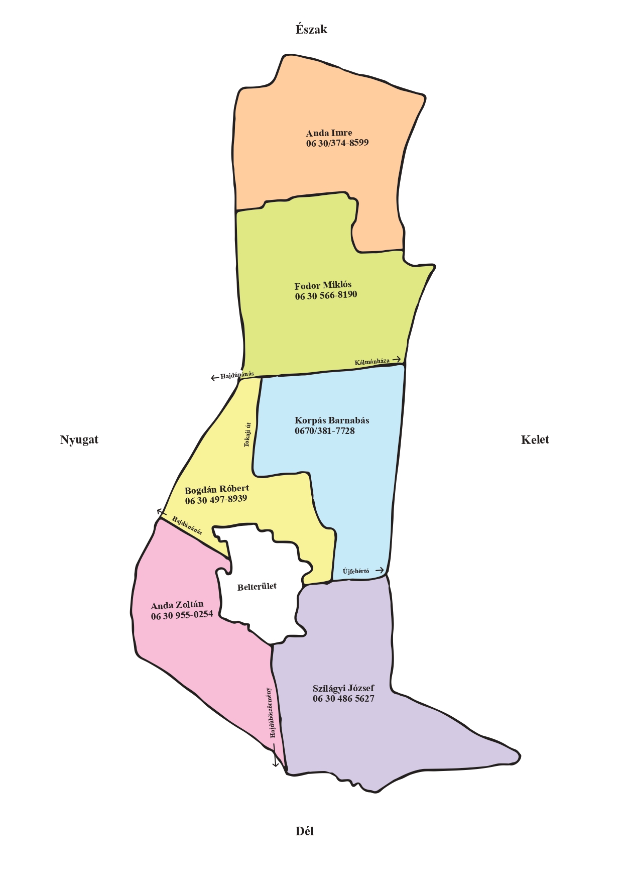 Hajdúdorog-Tamásbokor (3503 j.) közútig és a keresztúttól északra eso Kálmánháza-Hajdúnánás
